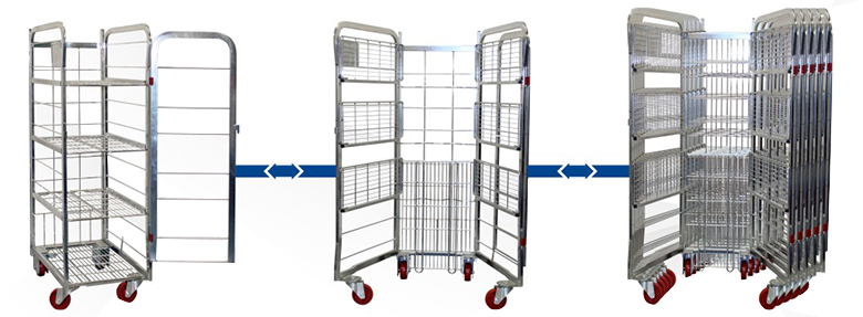 1、空间灵活:标准载货0.25m3,具备折叠、多车对插功能,100台车折叠后占地19m2,大大节省存储空间。